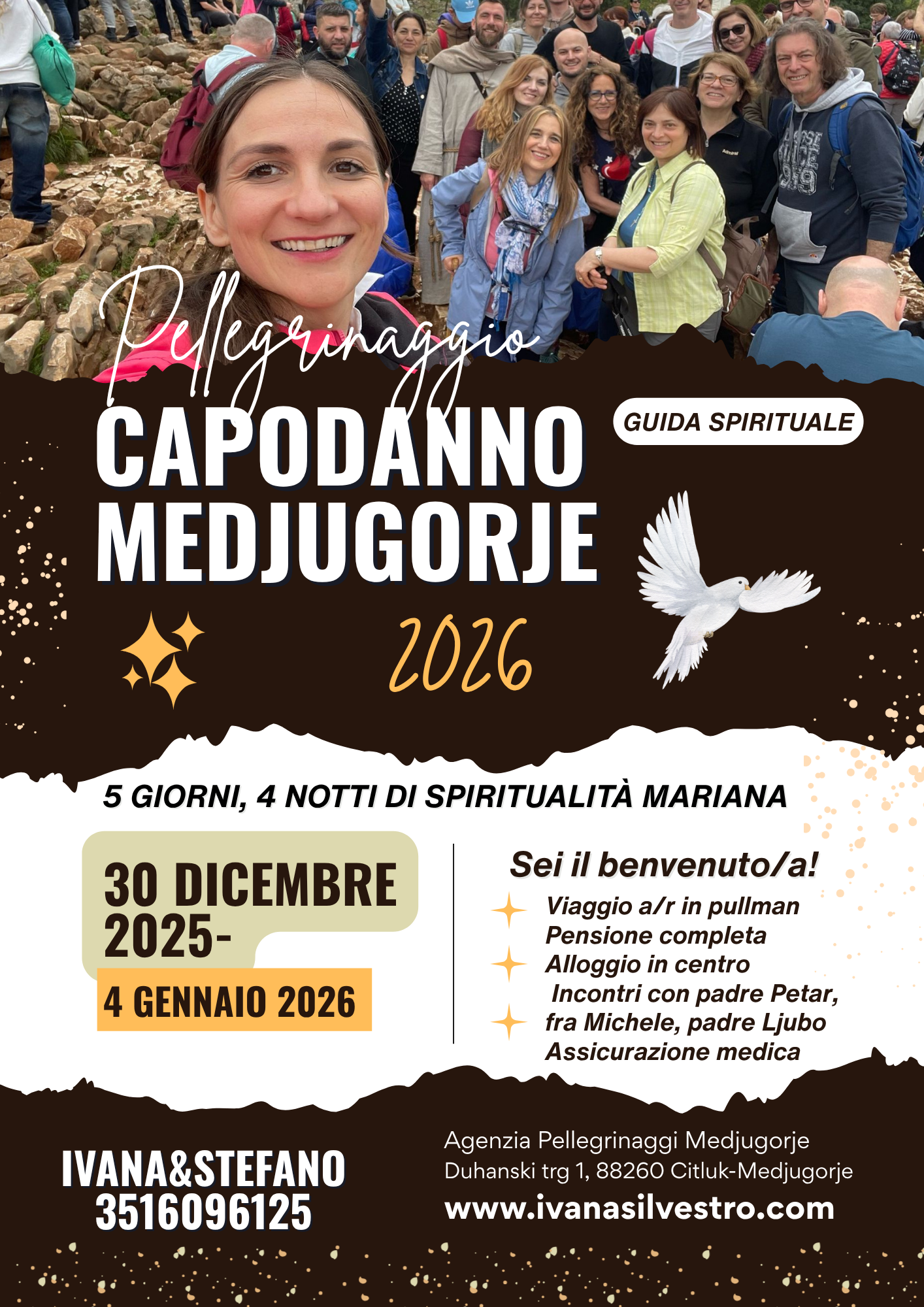 Capodanno a Medjugorje dal 30 dicembre al 4 gennaio 2026 con Ivana Silvestro, con agenzia ed assicurazione