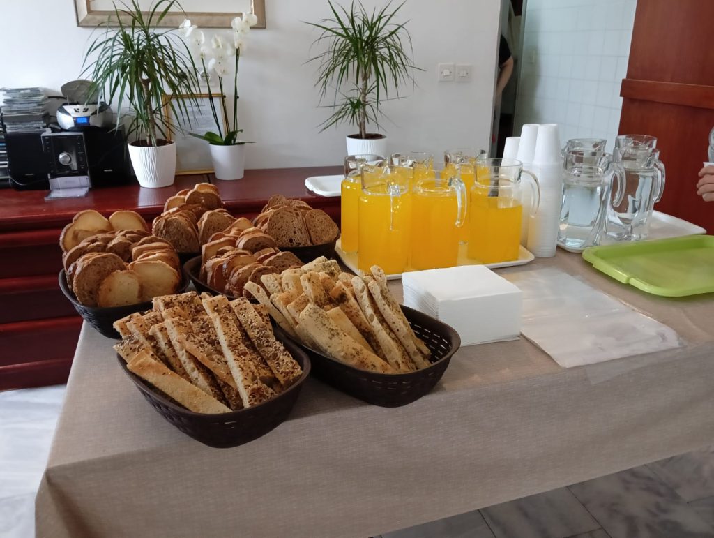 - Pensione completa (domenica sera cena del benvenuto, tipica medjugoriana, dal lunedì mattino al giovedì sera colazioni, pranzi e cene, 2 tipi di pane integrale focaccia, acqua, tisane e succhi sempre disponibili q.b., venerdì mattino colazione ricca normale